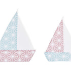 Die Segelboote sind zwischen 36 und 42 cm groß, bestehen Aussen aus 100% Baumwolle und sind in der Waschmaschine waschbar. Damit sie stabil und steif an der Wand hängen sind sie von Innen zusätzlich mit leichtem Vlies verstärkt. Inhalt: 2 Segelboote.