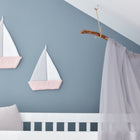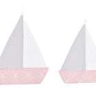 Die Segelboote sind zwischen 36 und 42 cm groß, bestehen Aussen aus 100% Baumwolle und sind in der Waschmaschine waschbar. Damit sie stabil und steif an der Wand hängen sind sie von Innen zusätzlich mit leichtem Vlies verstärkt. Inhalt: 2 Segelboote.
