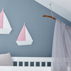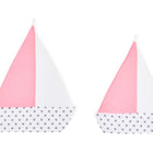 Die Segelboote sind zwischen 36 und 42 cm groß, bestehen Aussen aus 100% Baumwolle und sind in der Waschmaschine waschbar. Damit sie stabil und steif an der Wand hängen sind sie von Innen zusätzlich mit leichtem Vlies verstärkt. Inhalt: 2 Segelboote.